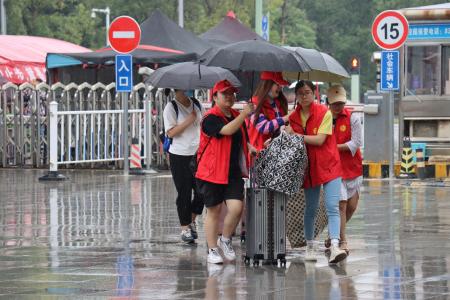 身穿“红马甲”的志愿者们忙碌地穿梭在蛟桥园校区的各个角落。或是引导新生办理入学手续,或是走上前去致以一声亲切的问候,抑或是一边拿着行李,一边向新生们介绍着校园的建筑风景,他们尽职尽责地尽自己所能为新生们解答问题。虽然迎新期间的天气不似预期,但是志愿者们的热情却丝毫未减,他们以一抹耀眼的“江财红”感染着每一位初入校园的新生,他们用行动表明了志愿者们应有的责任与担当。此外,由于疫情的原因导致一同前来的新生家长们不能进入校园参观,为此金沙 志愿者们也耐心地向其进行了答复,表示家长们不用过分担心孩子们的适应问题,学院会积极主动地帮助新生更好的融入大学生活。