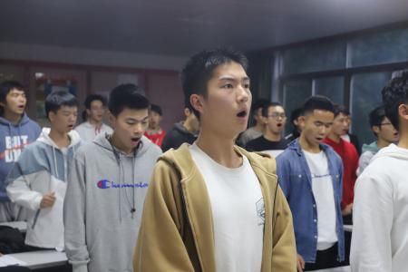 本次训练在专业老师的指导下,练声有条不紊地进行着。在一次次试音中,原本杂乱无章的音调逐渐合而为一,雄浑的男高音汇成一道洪流,穿透木门响彻整层楼道。随着“追寻,我生命的那份纯真,心中抹不去的那一片云彩……”的歌声响起,音乐逐渐到达了高潮,同学们仿佛已然忘却了自我,如同置身于歌声之中般,诠释着每句歌词的情感,字字珠玑,令人潸然泪下。