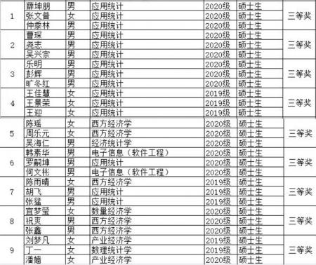 统计学院历来高度重视此类赛事,将学科竞赛作为提升研究生培养质量的重要手段,广泛发动宣传并积极组织研究生参与,这次佳绩的取得充分展现出统计学院研究生学子良好的精神风貌和扎实的专业素质,也是对统计学院研究生创新教育培养工作的充分肯定。