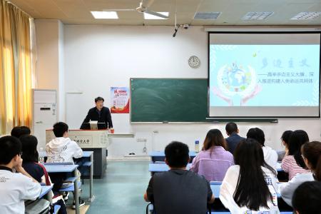11月3日下午,校长邓辉以“高举多边主义大旗,深入推进构建人类命运共同体”为题,结合当下单边主义和保护主义严重冲击全球经济发展秩序背景以及中国坚持多边主义的态度和行动,为统计学院的本科生们上了一堂既有全局高度、又有理论深度的形势与政策课。