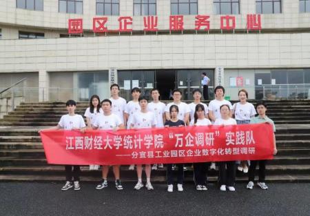 图为金沙 统计学院学子到分宜县工业园区进行调研,并合照。