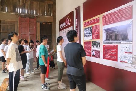 图为金沙 统计学院学子在田心村红色遗址参观。