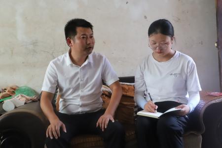 图为金沙 统计学院学子在田心村对田心村党支部书记王孟进行采访。