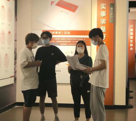 结束了渝水区罗坊会议纪念馆的走访调研之后,四支队伍在各队长的组织下就后期的工作安排召开了一次简短的会议。会议上,队长们交代了组内队员的分工和各项工作安排,内容主要包括对活动期间所收集的问卷进行数据统计和分析、整理好相关的采访视频和访谈笔记等,并希望每个队员能从活动中有所收获。队员们则认真记录下各自的工作任务,分享个人的活动感受和心得体会,并表示在此次“三下乡”活动中,自己收获颇丰。