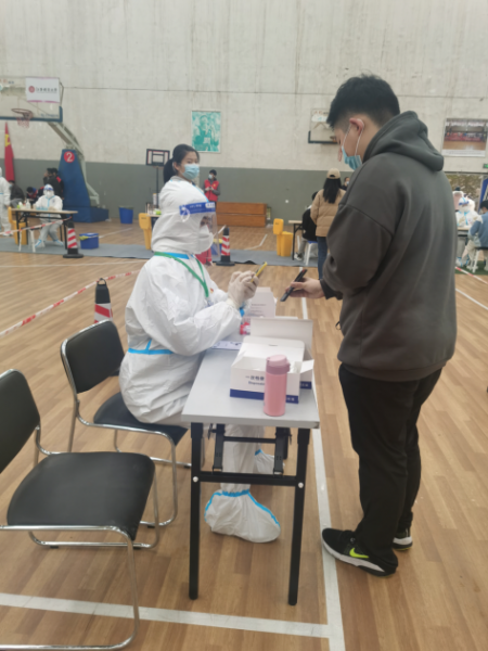 线下聚力,全面防护不打折。核酸检测现场,在学院老师和医护工作人员的安排下,统计学院志愿者们准时到位,有序分工,做好协助核酸检测同学生成昌通码、秩序维护、排队指引、核酸码扫码等工作,为核酸检测采集提供人力支持。